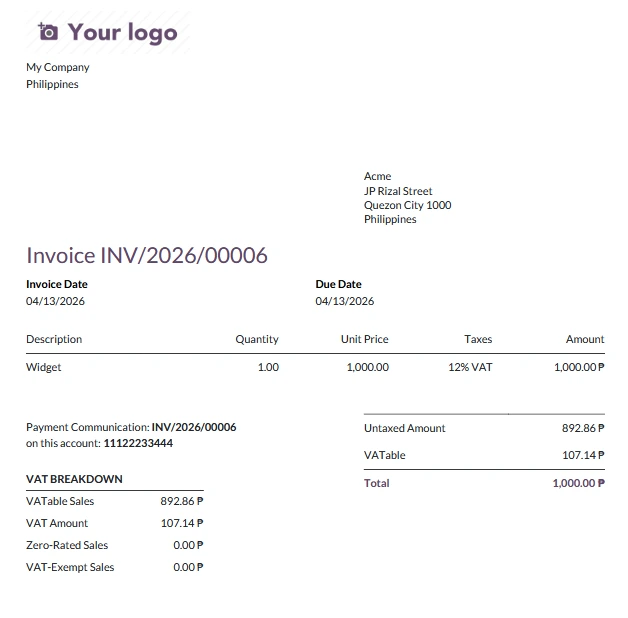 Multi-Currency Reliability: Even if you bill in USD, the module ensures the VAT breakdown is accurately converted and displayed in PHP for local compliance.